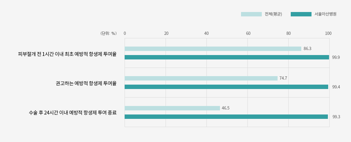 - 평가 대상 : 18개 수술(개두술, 견부수술, 고관절치환술, 담낭수술, 대장수술, 슬관절치환술, 유방수술, 자궁적출술, 전립선절제술,